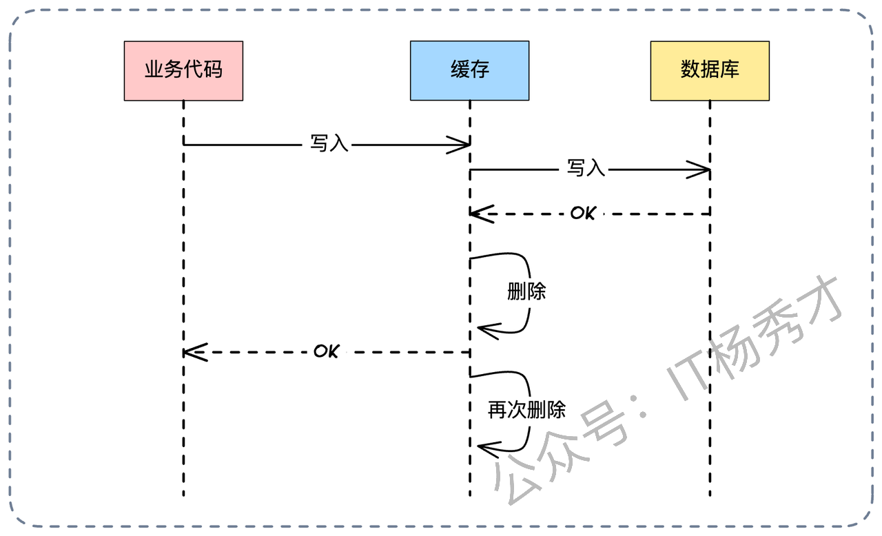基本流程是:先删缓存(可选) -> 写数据库 -> 删缓存 -> (休眠 N 毫秒) -> 再次删缓存。