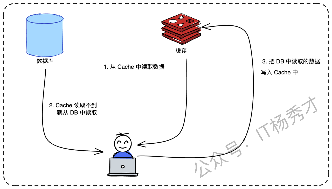 应用程序在这里扮演了数据流转的“总指挥”或“调度员”的角色,它需要同时感知并操作 DB 和 Cache 两个数据源,而不是让缓存组件去自动代理数据库的访问。
