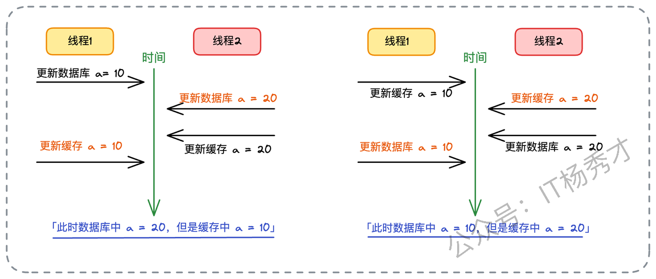 结果是什么?数据库里是正确的 20,但缓存里却是过期的 10。如果不加控制,直到缓存过期前,用户看到的都是错误的库存。
