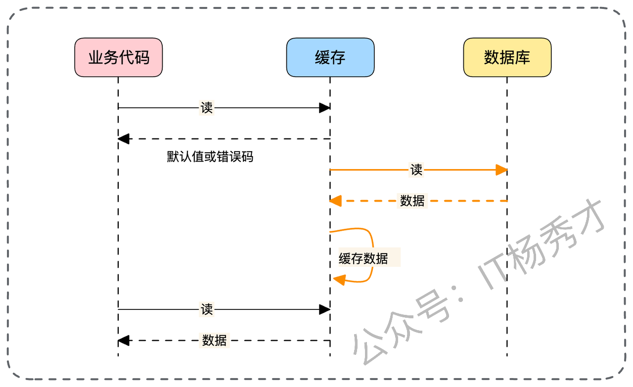 它的核心理念是:业务方你只管找缓存要数据,如果缓存里没有,缓存组件自己会去数据库加载数据,并把自己喂饱。