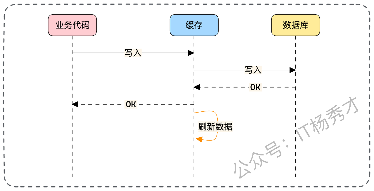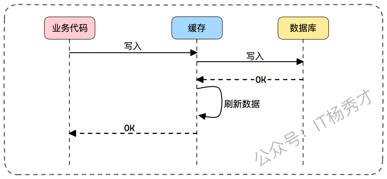 这种模式有一个致命硬伤:丢数据。如果缓存组件在回复“成功”后,还没来得及写库就宕机了,那这笔数据就彻底蒸发了。
