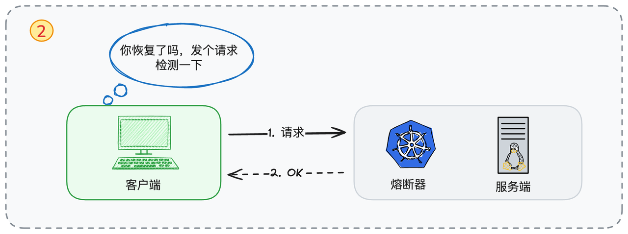 客户端等待一个预设的时间窗口(比如30秒)后,将节点A置为“半开”状态,并试探性地发送一小部分请求(比如单个请求或1%的流量)到节点A。