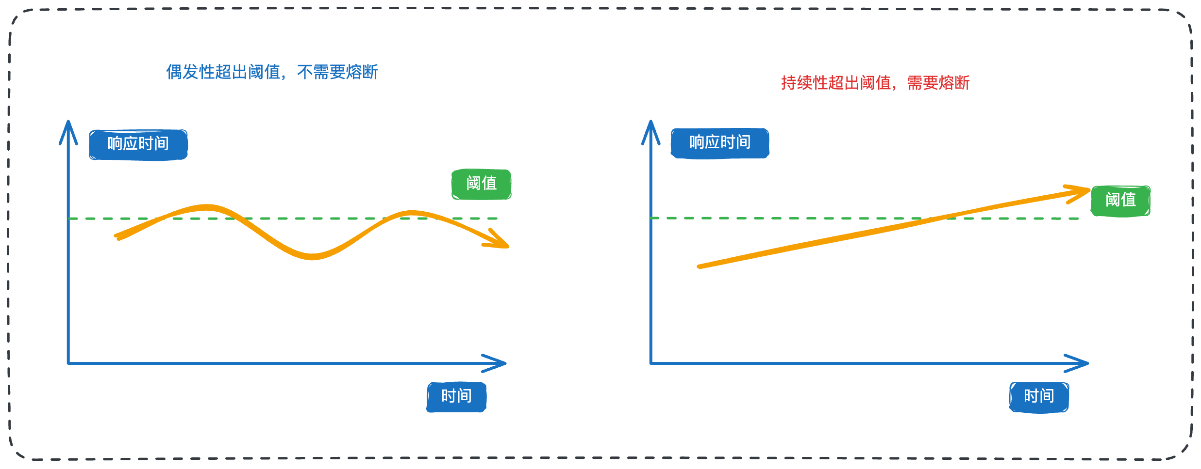 无论选择哪个指标,我们都需要考虑两个核心要素:阈值的设定,以及是否需要持续一段时间才触发熔断。