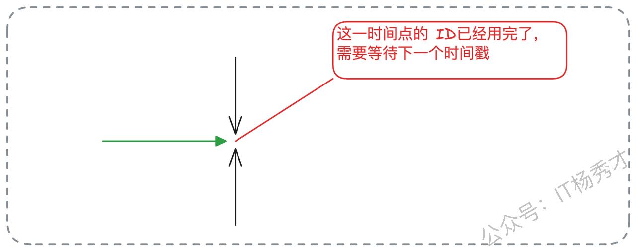 显然,理论上确实存在这种可能性,所以我们需要准备解决方案。解决思路其实并不复杂。如果12位不够用,可以增加序列号的位数,这部分位数可以从时间戳中拿出来。如果还不够,可以让业务方等待到下一个时间戳,时间戳变化后自然又可以生成新的ID了,这实际上是一种变相的限流机制。
