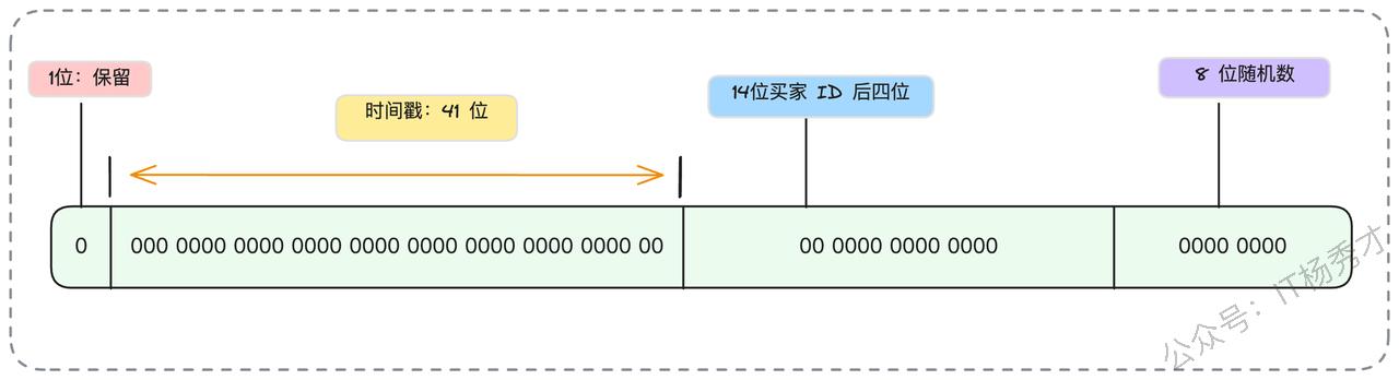 这一类解决方案的核心思想是不拘泥于雪花算法每一段的固定含义。比如第二段可以使用具备业务含义的ID,第三段可以自增,也可以随机。只要我们最终能够保证ID生成大体上是全局递增的,并且是独一无二的就可以。