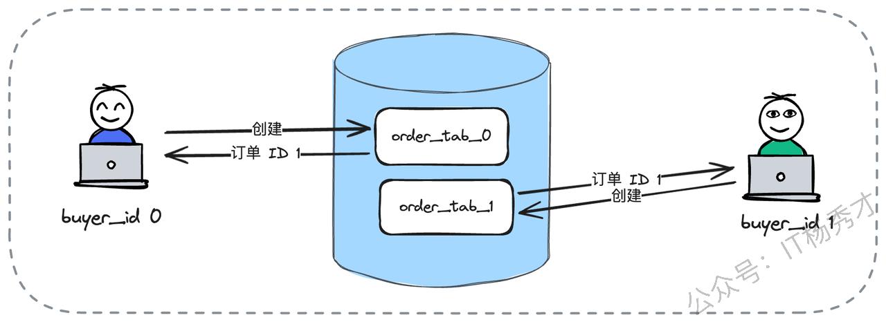 )然而在分库分表的场景下,这种自增主键机制就会失效。假设我们按照买家ID对2取模的方式将订单表拆分为两张表,分别是order_info_0和order_info_1。如果这两张表都依赖各自的自增机制生成主键,那么两张表可能会生成相同的ID。比如两张表各自插入第一条记录时,生成的ID都是1,这就导致了主键冲突。