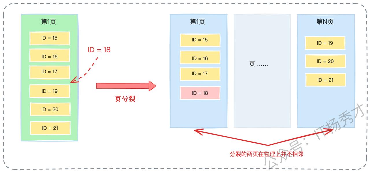 如果你希望在面试官面前展现更深入的数据库知识,可以进一步解释数据库页分裂的具体机制,这里可以用MySQL的InnoDB引擎来举例说明。