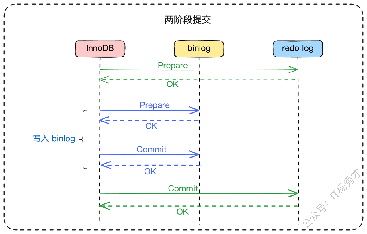 在事务执行过程中,binlog的写入时机与redo log的提交过程紧密结合,形成了一套被称为“两阶段提交”(Two-Phase Commit, 2PC)的内部机制,以保证redo log(物理日志)和binlog(逻辑日志)之间的数据一致性。