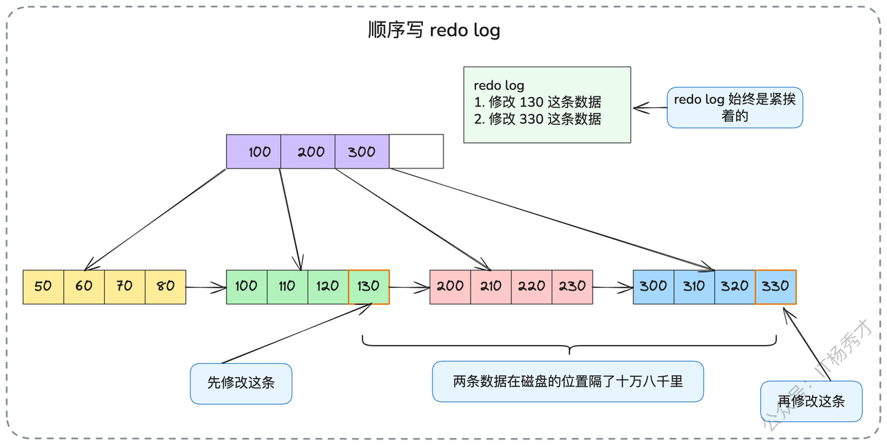 redo log这一机制? 因为直接修改数据文件是随机I/O,性能极差。redo log通过将随机I/O巧妙地转化为顺序I/O,极大地提升了数据库的写入性能。