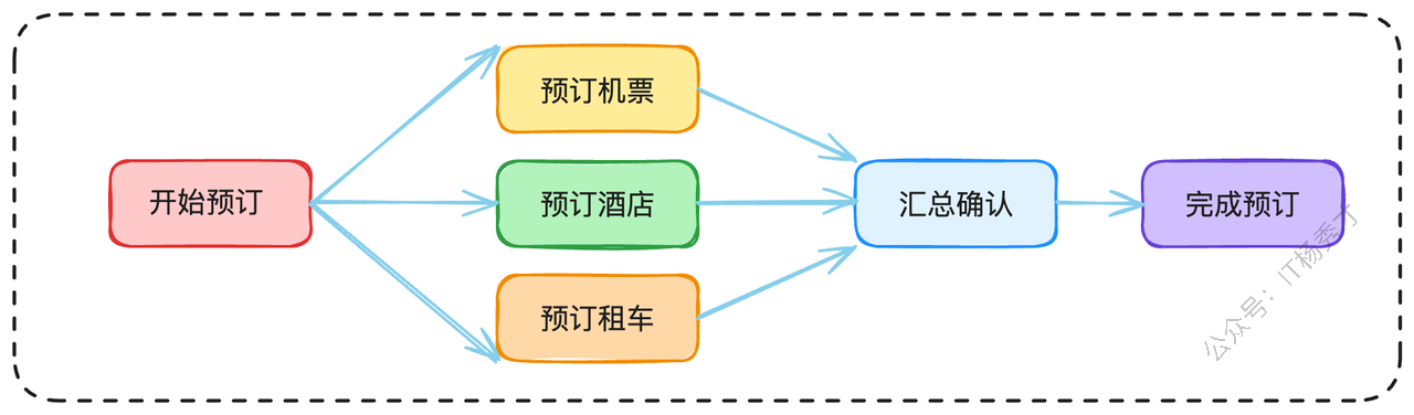 SAGA 模式特别适合那些业务流程长、涉及多个服务的场景。它还有一个 TCC 不具备的亮点:支持并发执行。比如一个复杂的“旅行预订”SAGA,它可以并发地执行“预订机票”、“预订酒店”、“预订租车”三个子事务,因为这三者之间可能并无依赖,并发执行可以大大缩短整个 SAGA 事务的总体耗时。