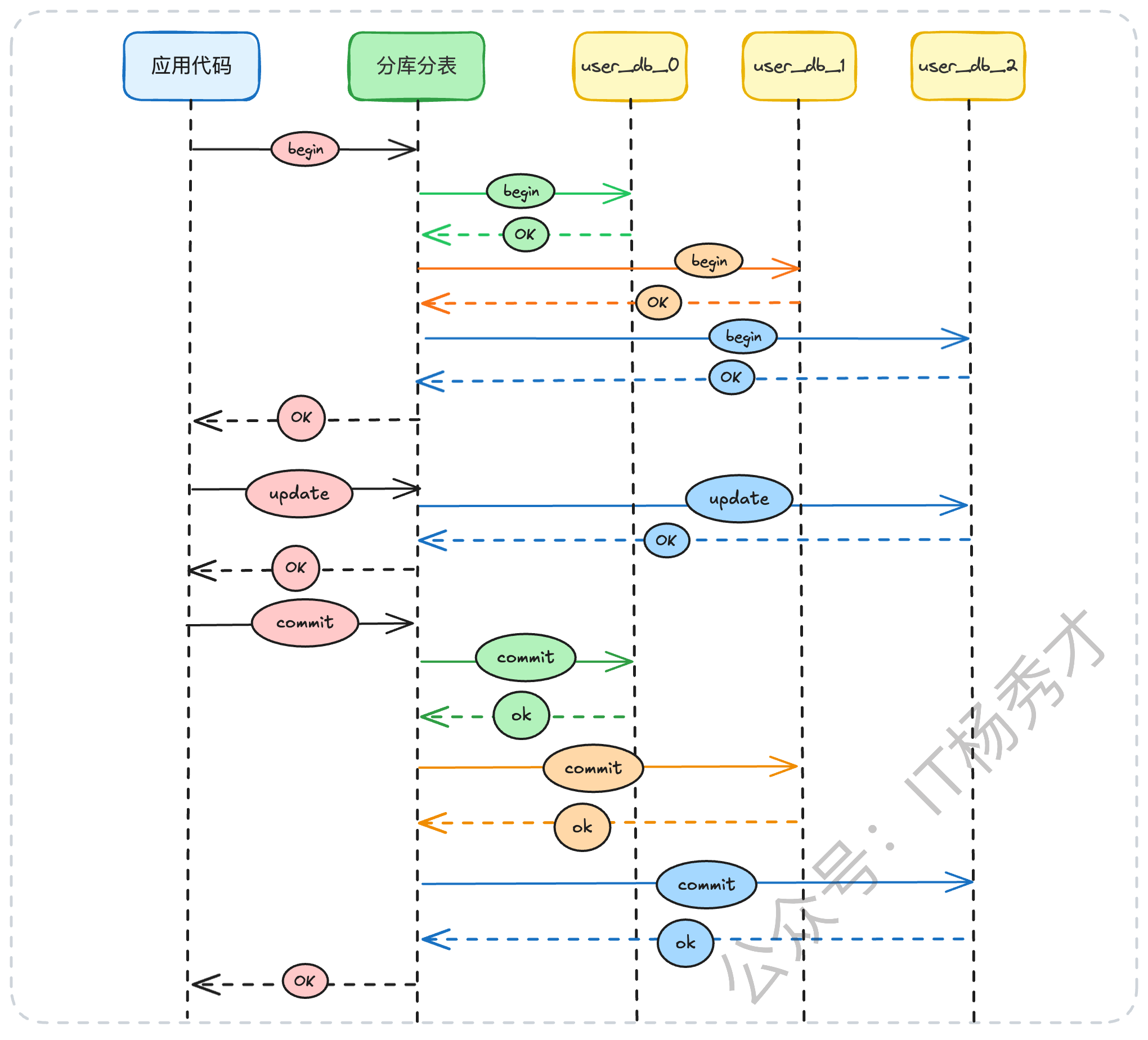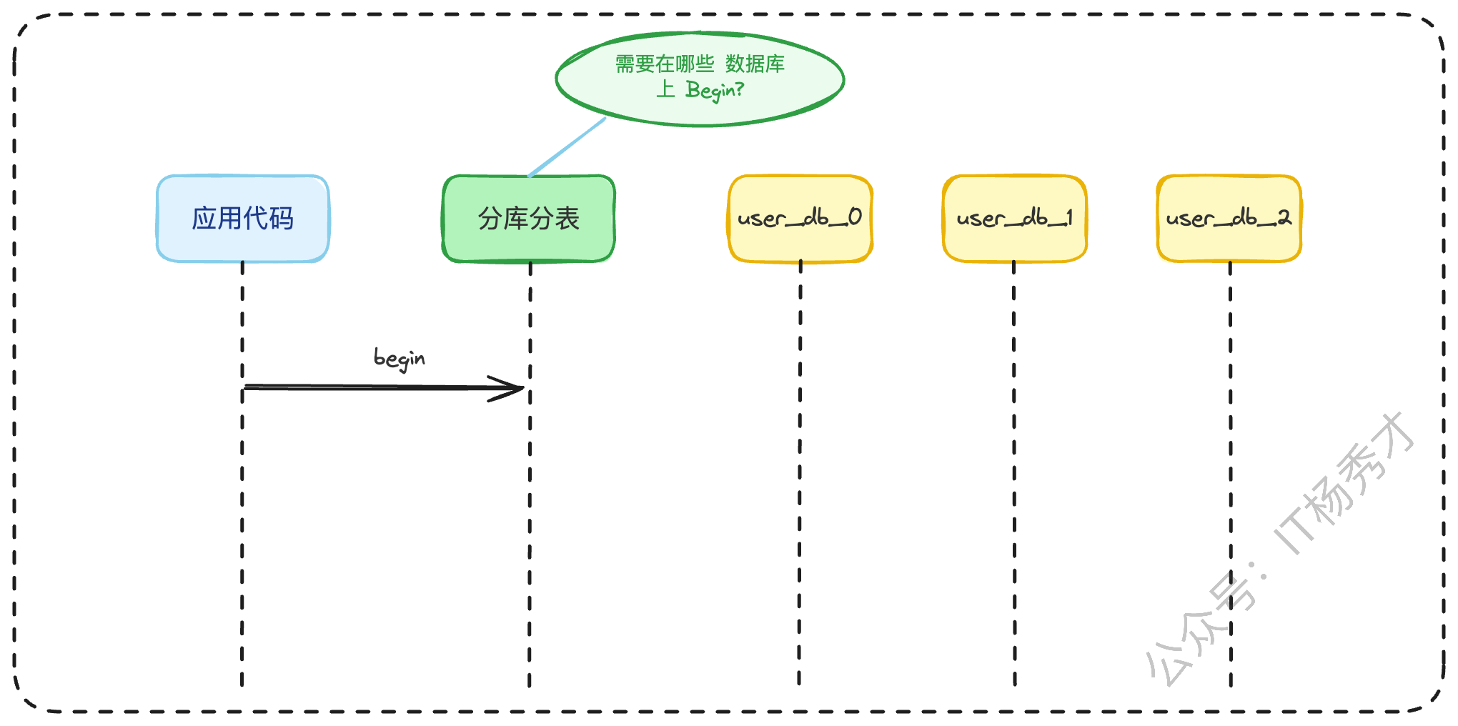 这个方案要解决一个核心痛点:当应用层执行 Begin(开启事务)时,中间件根本无法预测你接下来的 SQL 会落到哪个分库上。