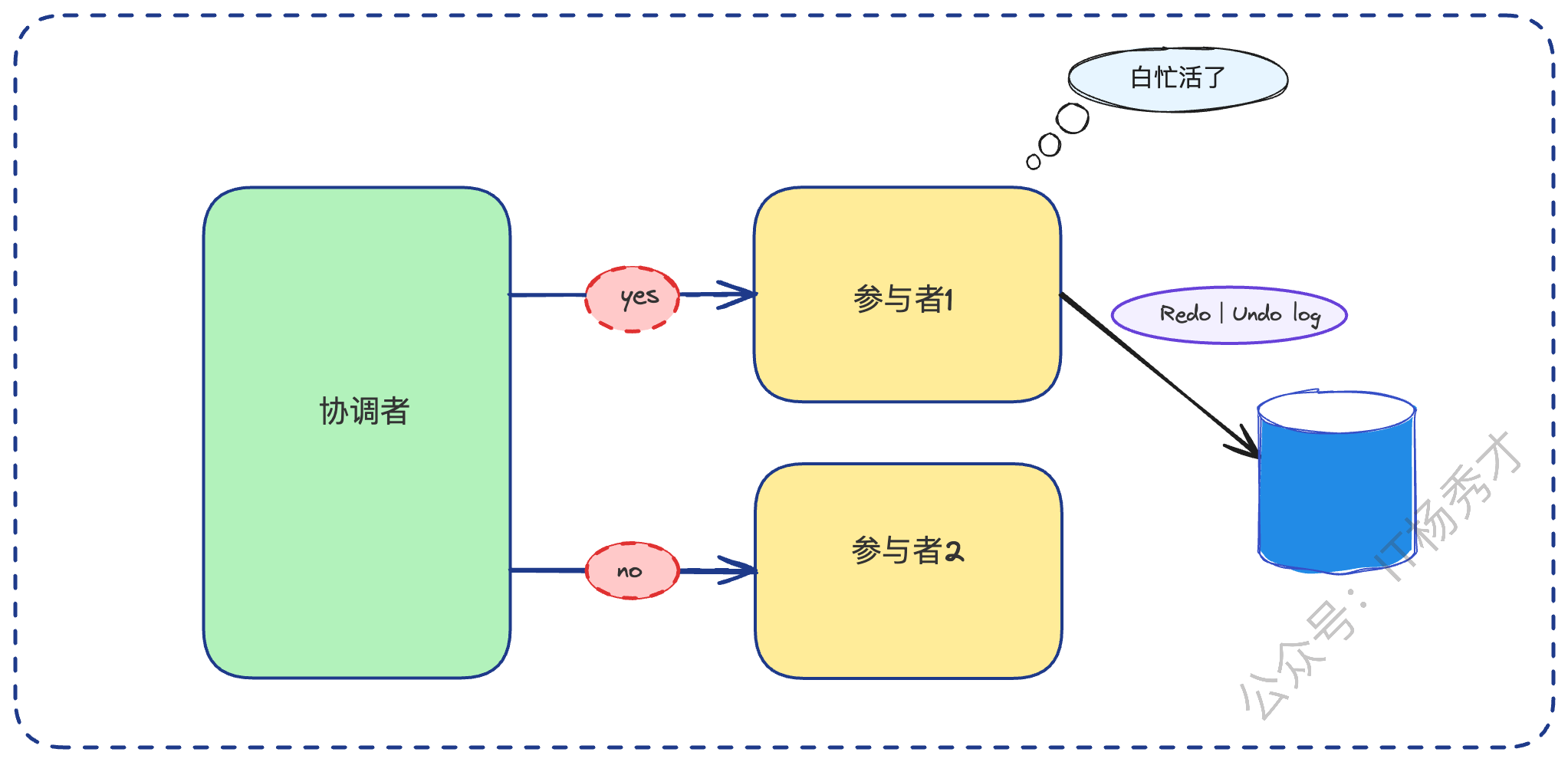 它分为“准备”和“提交”两个阶段。在准备阶段,协调者向所有参与者发出“准备”指令。参与者收到后,开始执行本地事务操作(如修改数据、锁定资源),但并不提交。它们会记录下用于后续提交的 Redo 日志和用于回滚的 Undo 日志,然后向协调者回复“准备就绪”(Yes)或“无法准备”(No)。
