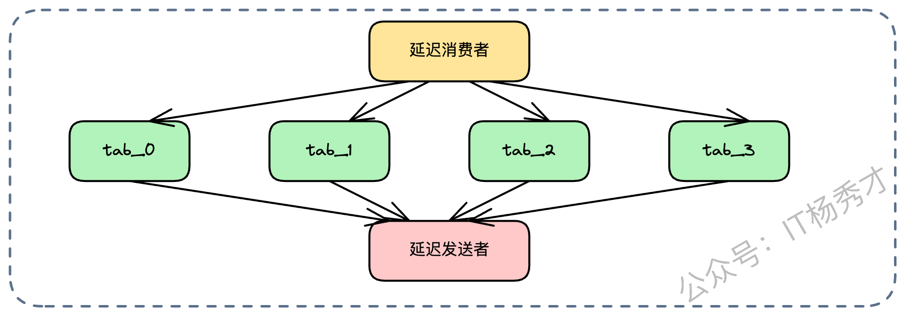 这样做的好处是惊人的:无论业务流量如何波动,这 32 张表的负载永远是绝对均匀的,没有任何热点。我们的扫描服务(Delay Sender)只需要开启多线程,并发地去扫这 32 张表,吞吐量直接翻倍。