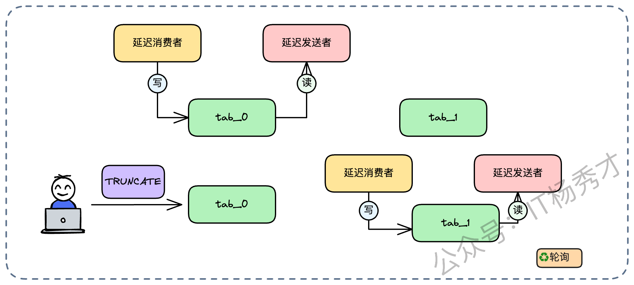 更进一步,我们可以采用“表轮转(Table Rotation)”的策略,或者叫“双 Buffer”策略。