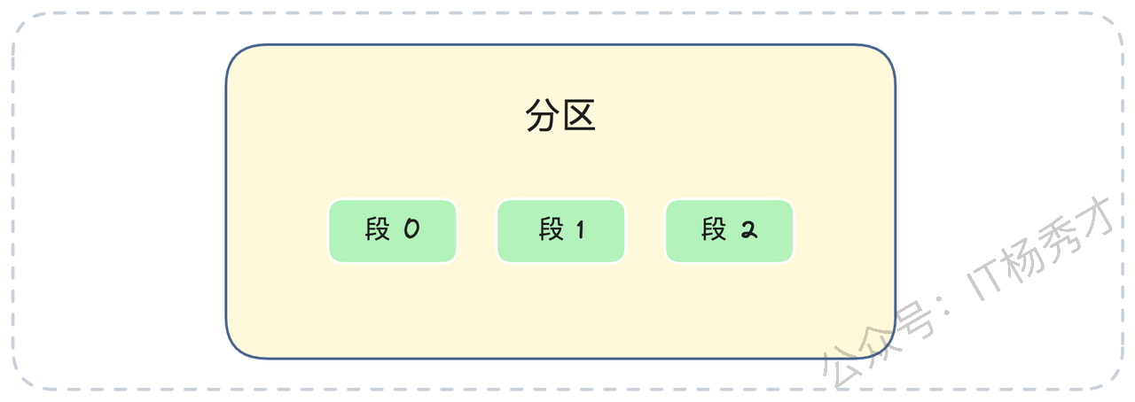你可以把一个分区(Partition)想象成一个图书馆,这个图书馆只按顺序收藏书(消息)。如果把所有的书都放在一个巨大无比的房间里,找某本书就会非常慢。Kafka 的做法是分段(Segment)。它把一个分区的日志(Log)切分成多个分段日志文件(Segment Log)。每个 Segment 就像图书馆里的一个书架。