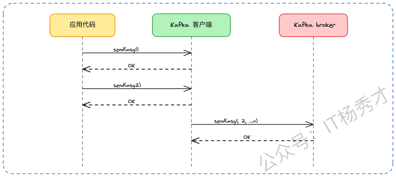 大幅减少系统调用:100条消息合并成1个批次,网络发送的
