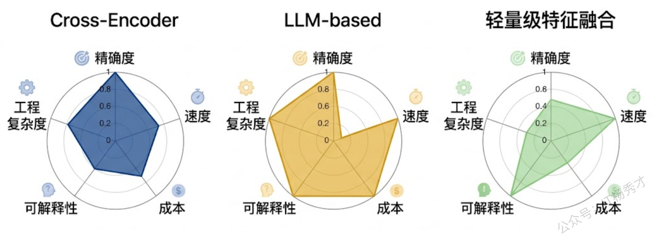 Rerank 不只有一种做法,根据模型架构和工程约束,主要有以下几种方案: