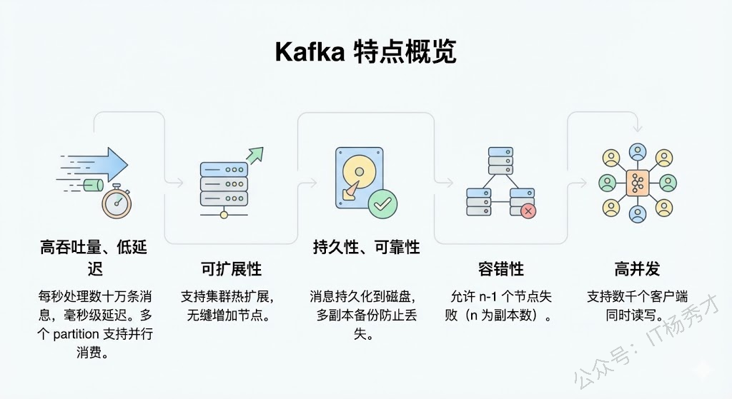 Kafka的最大特点就是高吞吐低延迟,单机十几万QPS,采用分区(Partition)机制实现水平扩展,搭配零拷贝技术(sendfile)性能极强。但功能比较单一,主要就是收发消息,适合大数据日志场景。