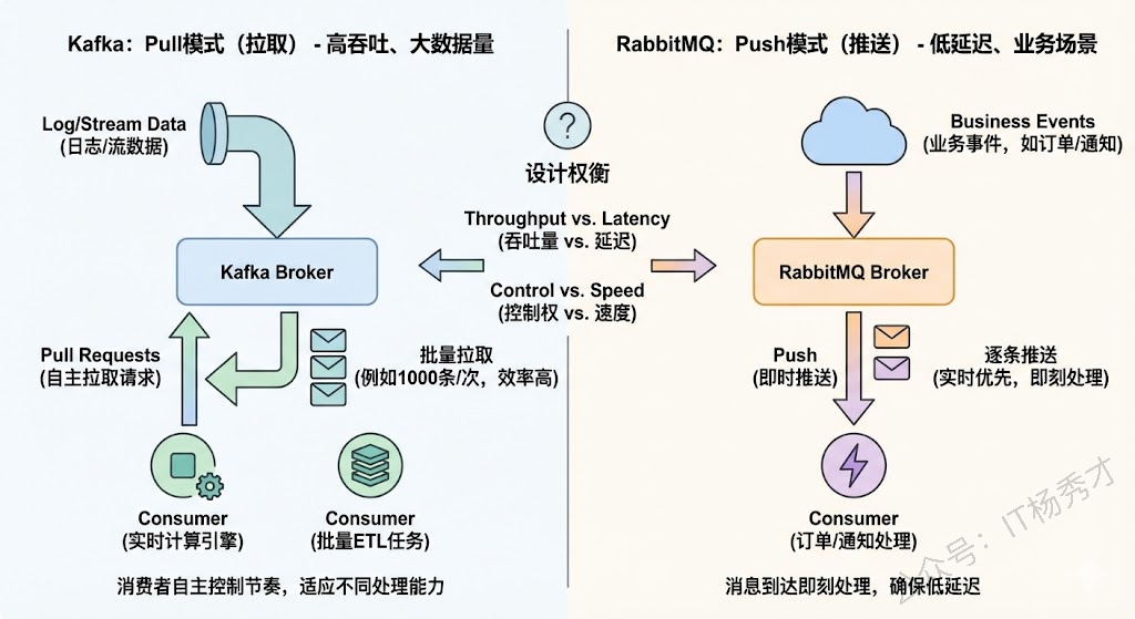 选型上,日志收集、大数据流处理这种追求极致吞吐的场景选Kafka;电商、金融这种需要丰富特性和高可靠性的业务场景选RocketMQ。
