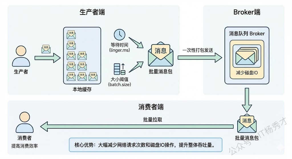 第三棒(消费)要跑完全程才算完成——消费者必须处理完业务逻辑后才回复ack,不能提前确认。