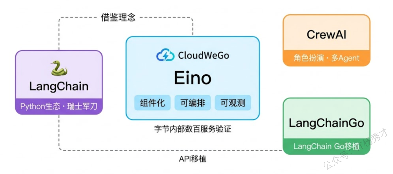 既然市面上已经有了 LangChain、LangChainGo、CrewAI 这些选择,为什么还要用 Eino?这个问题值得认真聊一聊。