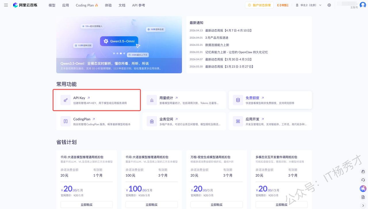 - 打开 阿里云百炼平台,用你的阿里云账号登录(没有的话注册一个)