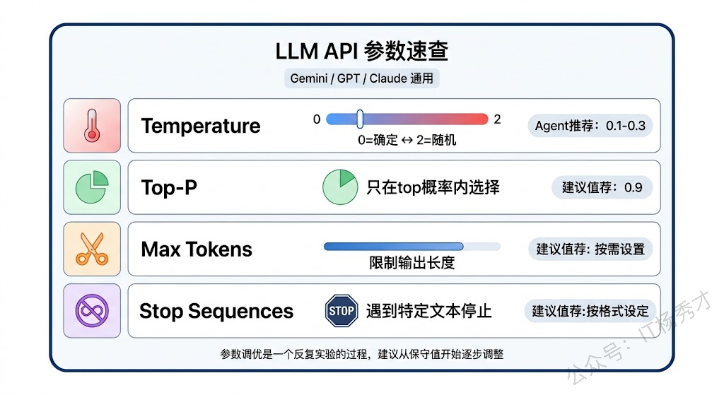 除了 Temperature 和 Top-P,在调用大模型 API 时还有几个常用参数值得了解。