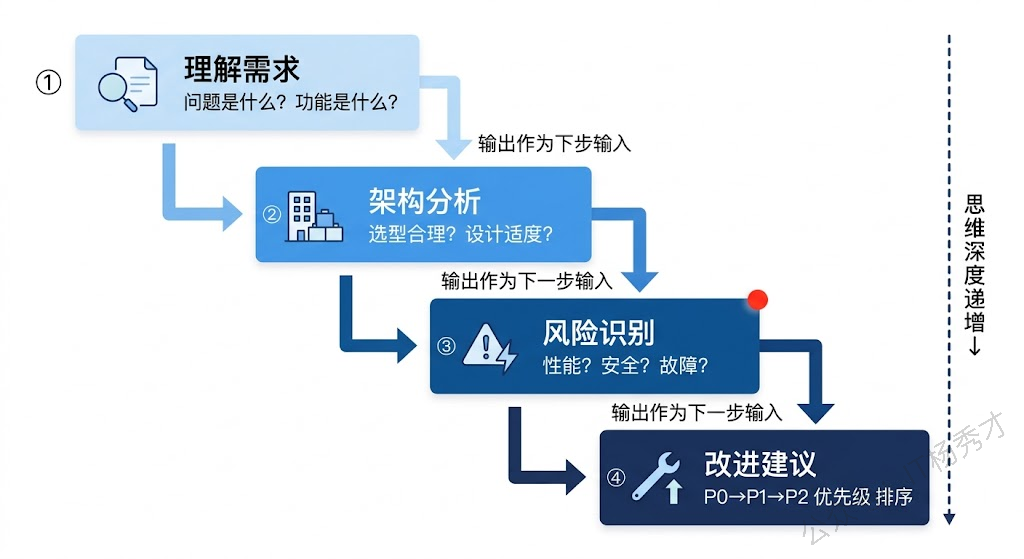 这种结构化思维框架在 Agent 开发中有广泛的应用场景——比如让 Agent 按固定流程处理客户投诉(安抚情绪→了解问题→查询信息→给出方案→确认满意度),或者按固定步骤审核数据(格式检查→范围验证→逻辑校验→结果汇总)。框架越清晰,Agent 的行为就越稳定可预测。